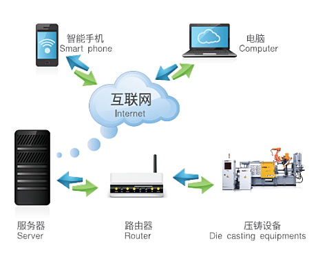 聯網后可隨時隨地通過智能手機或電腦掌控壓鑄機及壓鑄生產 過程,提升壓鑄生產管理水平,提高生產效率,降低管理成本。